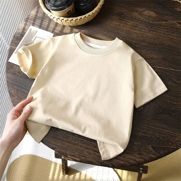 Keep your little one comfy and stylish with this High-Quality Summer Cotton T-Shirt for kids. Made from soft, skin-friendly polyester fiber, it’s lightweight, breathable, and perfect for everyday wear. The solid-color minimalist Korean design gives a trendy yet simple look that’s easy to mix and match. Ideal for both boys and girls, this short-sleeve tee can be worn alone or layered for any season.